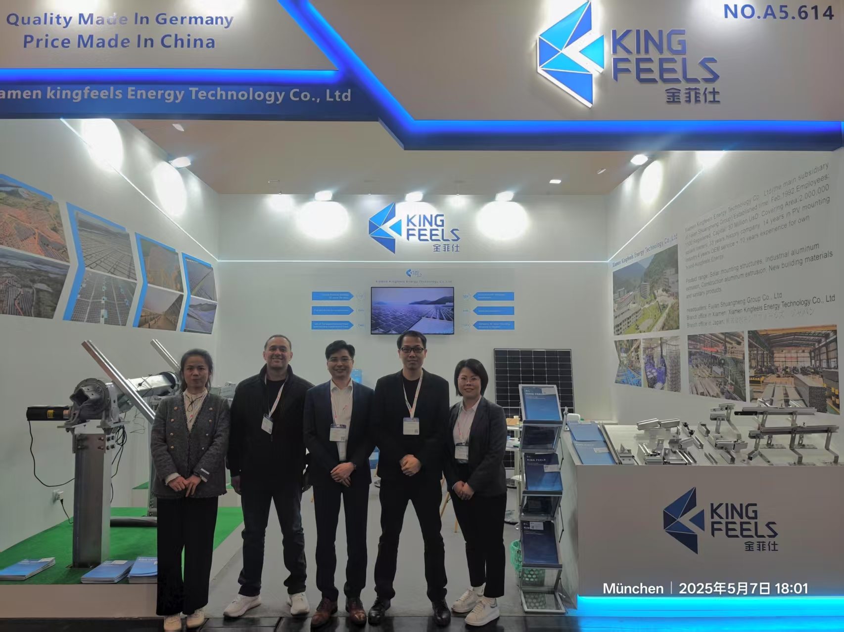 From May 7th to 9th, the world's largest and most influential photovoltaic industry event-2025 Munich Solar Photovoltaic Exhibition (Intersolar Europe 2025) was grandly opened at the Munich New International Exhibition Center. As a leading company in the field of photovoltaic brackets in China, Xiamen Kingfeels Energy Technology Co., Ltd. participated in the exhibition with "full-scenario photovoltaic bracket solutions", focusing on "innovation, efficiency, and reliability", demonstrating its effective strength in the field of new energy!