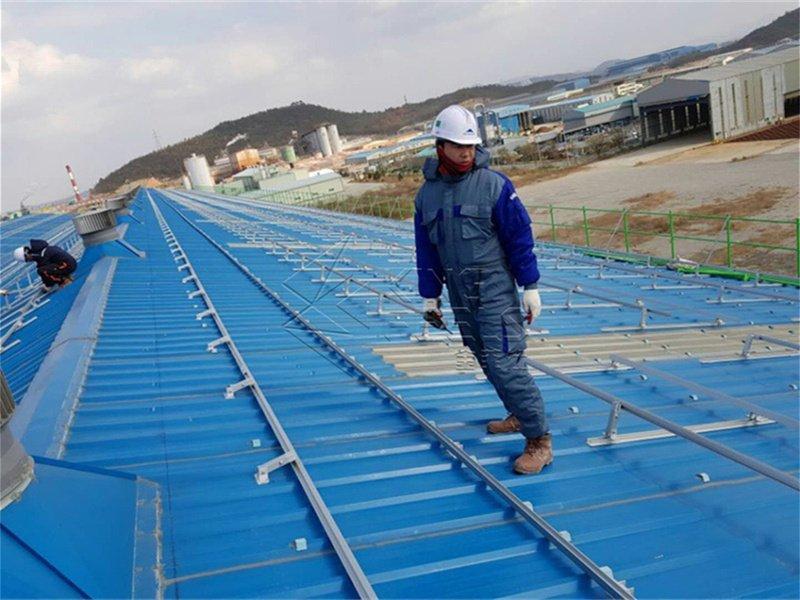 Standing Seam Solar Rooftop Mounting Solar Roof Racking Systems Clamps easily on the folded seam rooftop. The clamps are especially designed to catch the standing seam effectively.